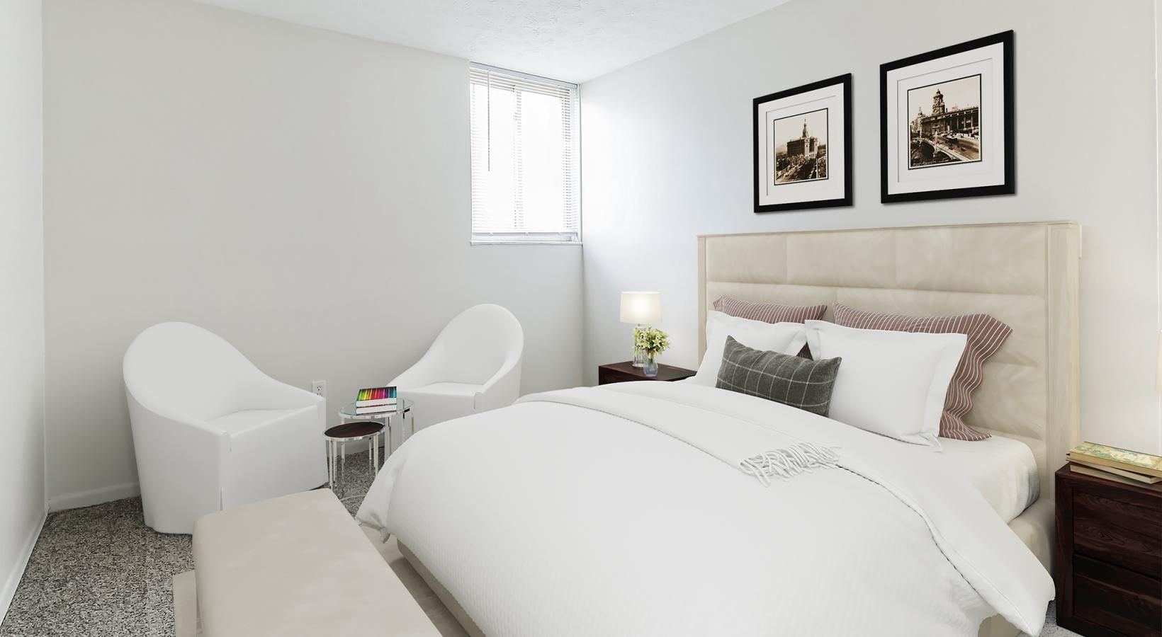• carpeted bedroom with a window